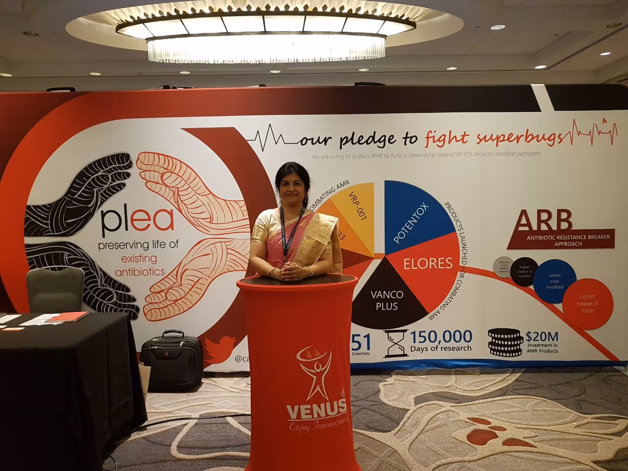 Venus raised Indian voice against AMR and exhibited its innovative solution to combat AMR in the global event. Venus presented its innovation with Antibiotic Resistance Breaker in the event.