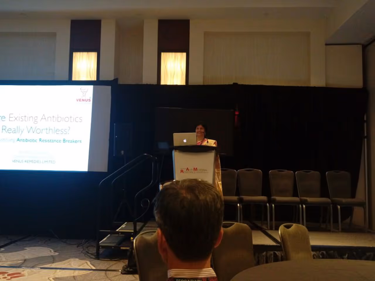 Venus Remedies Limited (VRL) a fully integrated, research-driven Indian Pharmaceutical company active in the development of effective treatments for life-threatening infectious diseases, represented at World AMR Congress 2017 and showcased its research on Antibiotic Resistance Breaker(ARB). Mrs. Manu Chaudhary, Ph.D., the company's Joint Managing Director cum Director research, delivered a keynote lecture at the 2017 World Antimicrobial Resistance Congress on September 14 in Washington, D.C. The keynote lecture titled "Are existing Antibiotics really worthless Demystifying Antibiotic Resistance Breakers" explored the possibilities to revive existing antibiotics by using ARB approach. She has also represented the screening of suitable ARB for Venus flagship product Elores.